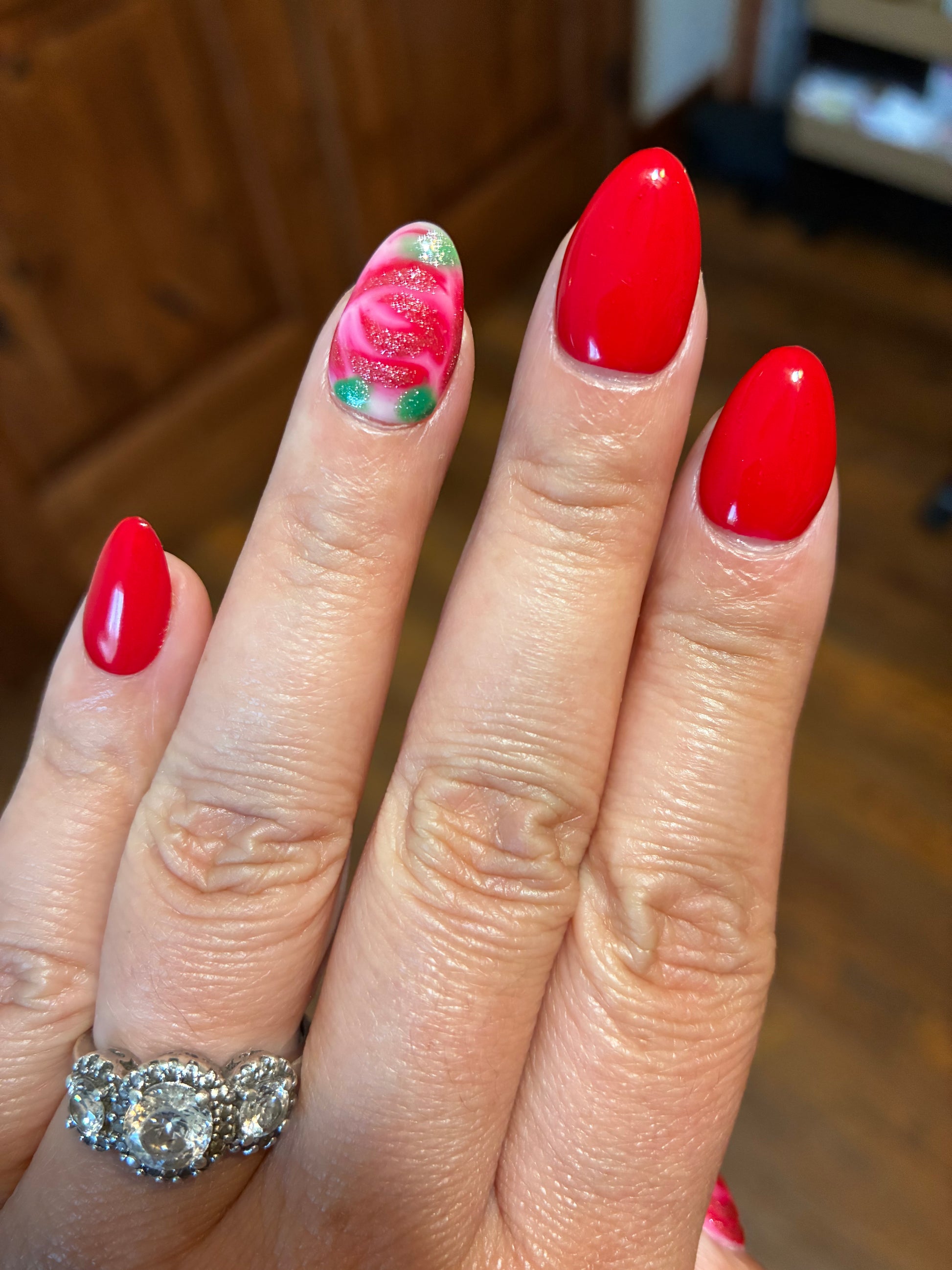 Includes subtle accents like ombré, shimmer, chrome tips. Includes up to 2 accent nails per hand. A step up from basic.